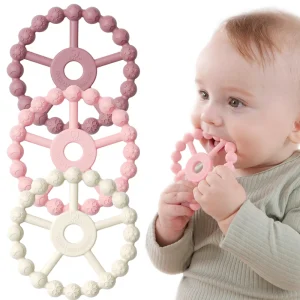 Rubber baby products, like pacifiers or teething rings, may contain small amounts of latex, which some babies may be allergic to. Plus, rubber can wear down more quickly, meaning it may not be as durable or long-lasting as silicone, which can handle the wear and tear of teething without cracking.